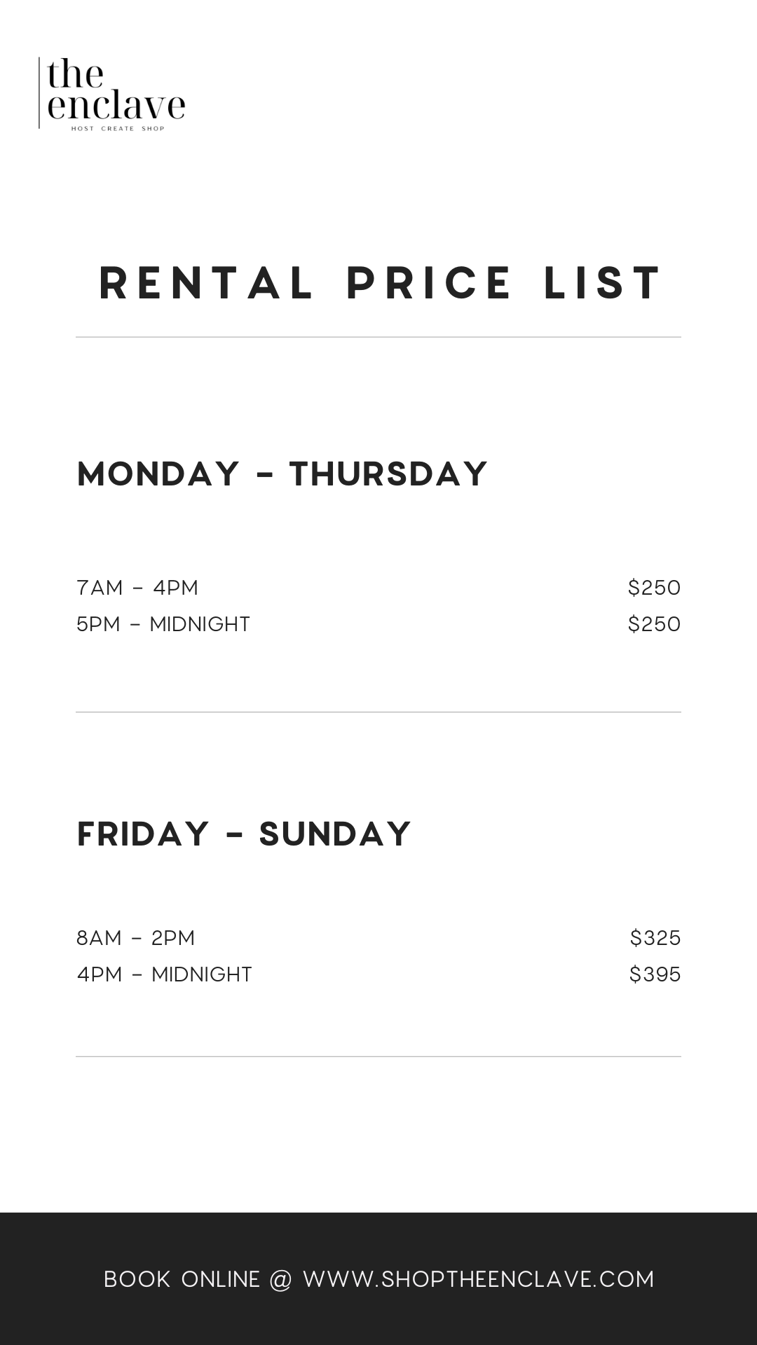 *Deposit of $150 due upon booking. Deposits are non-refundable if event is cancelled within one month of your event date. Contract will be sent via email within 24 hours of booking & final invoice will be sent within 3 weeks of your event.